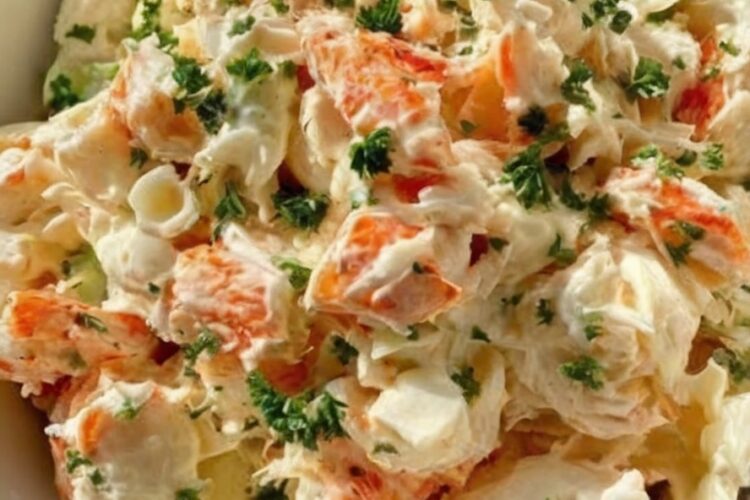 The first time I made this crab salad, I honestly thought it would just be “pretty good.” Nothing fancy. Just something cold and creamy for sandwiches. But then my family kept going back for seconds — and thirds. Now it’s our go-to for quick lunches, summer parties, and those nights when cooking feels like too much work.